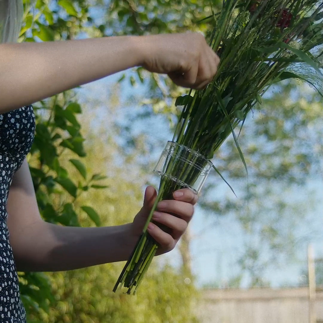 The Hanataba Flower Twister was designed by Christian Jonasson, Jenny Strand's husband, to make creating professional-quality floral arrangements more accessible to everyone. Drawing on years of experience in creating and teaching bouquet making and floral designs, Christian recognized the need for a tool that would simplify the process of creating spiral bouquets, allowing individuals to achieve the perfect volume and structure at home. The result is a beautiful flower stem holder that ensures ease of use and perfect results every time.