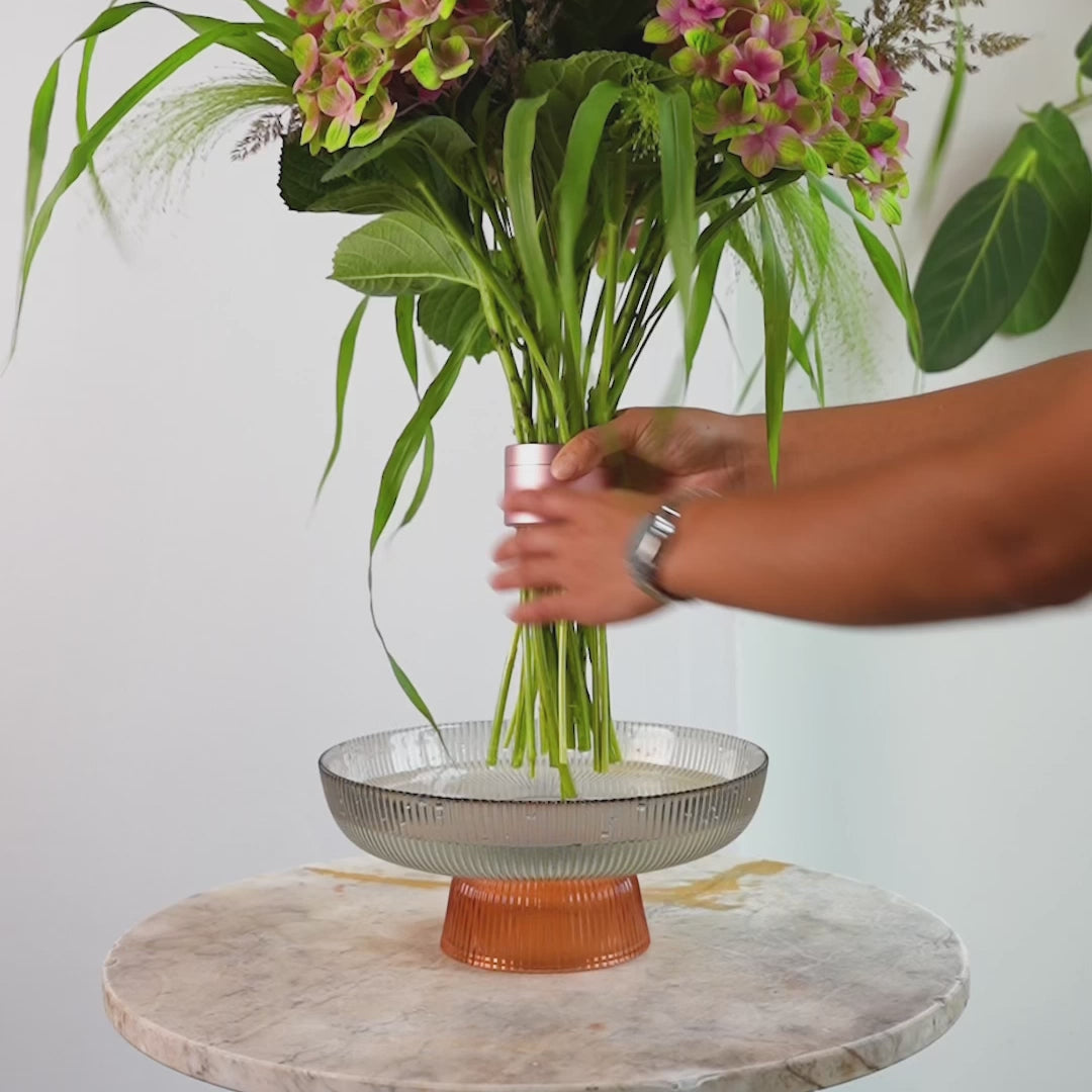 Insert your fresh or dried flower stems, twist, and instantly create elegant spiral-shaped bouquets with a soft, rosy glow. Perfect for roses, peonies, tulips, lilies, eucalyptus, pampas grass, and seasonal flowers.