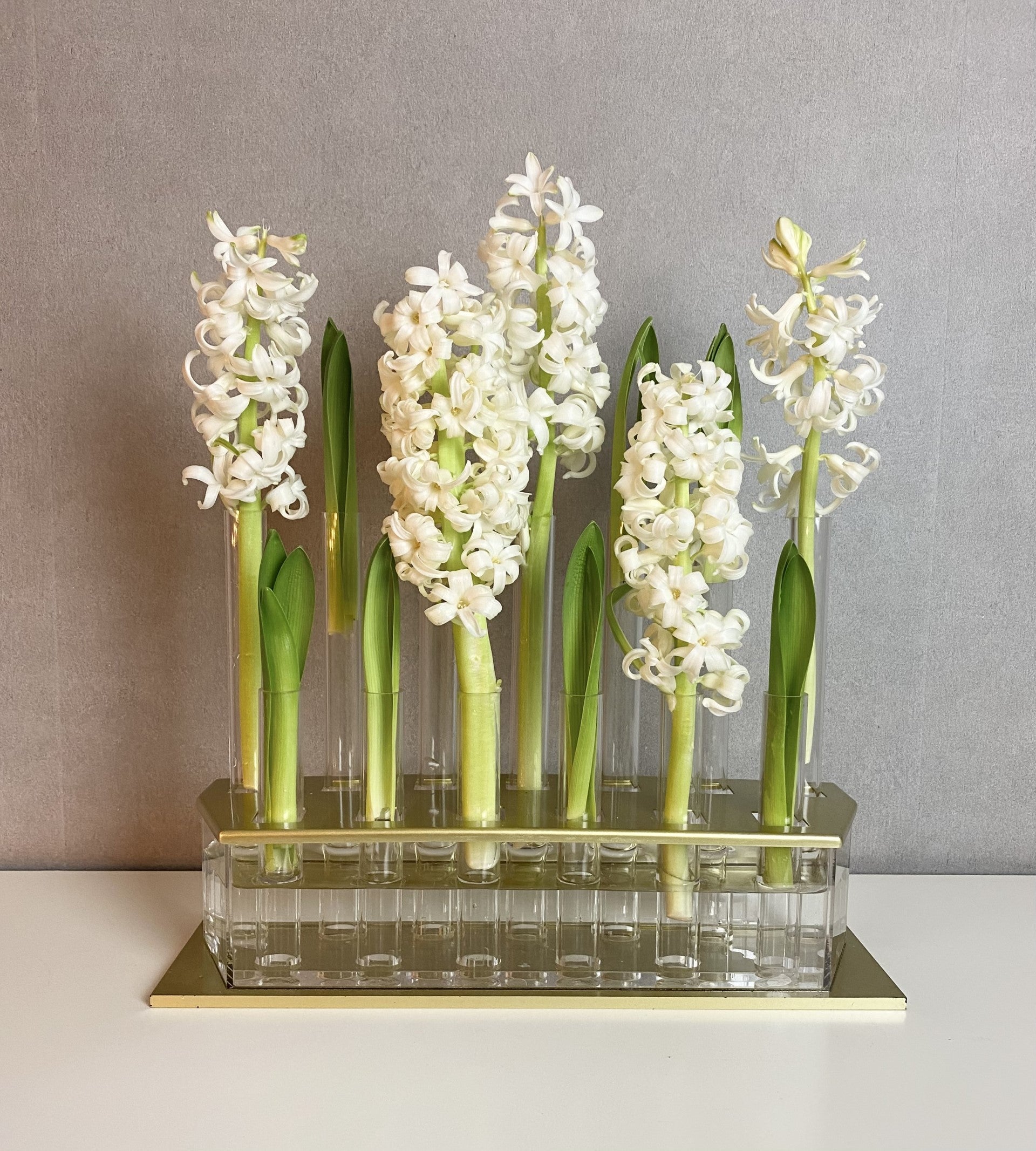 The vase can be assembled in several different ways, making it easy to adjust the shape depending on your bouquet and the occasion. Watering is exceptionally smooth—simply pour water into one tube or opening, and it will distribute evenly to all stems through the grooves between the glass tubes.